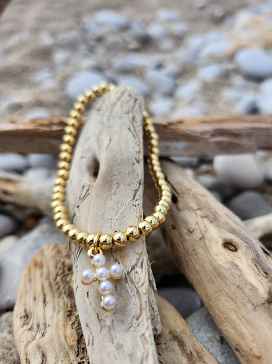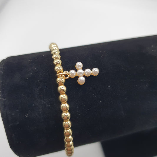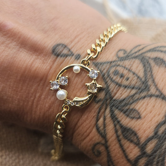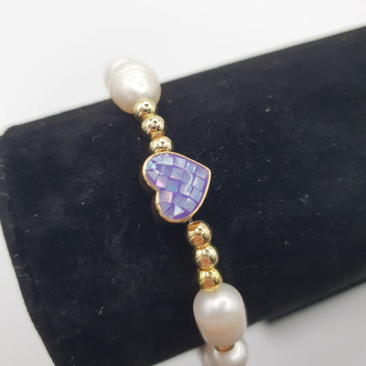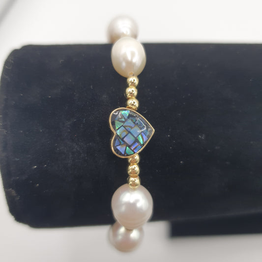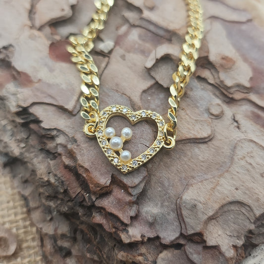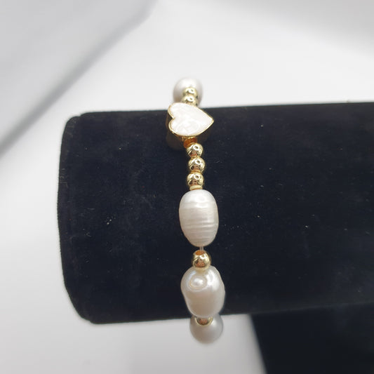 Avalyn Gold Heart Bracelet with Pearl Detail