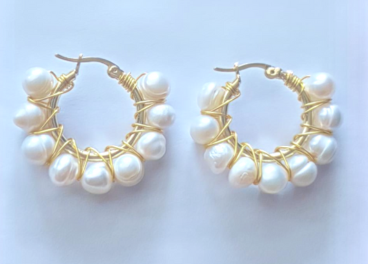 Lynette Gold Pearl Hoop Earrings