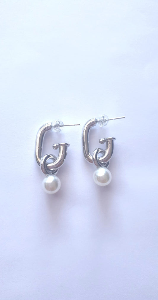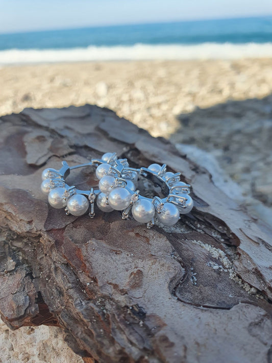 Lynette Silver Pearl Hoop Earrings
