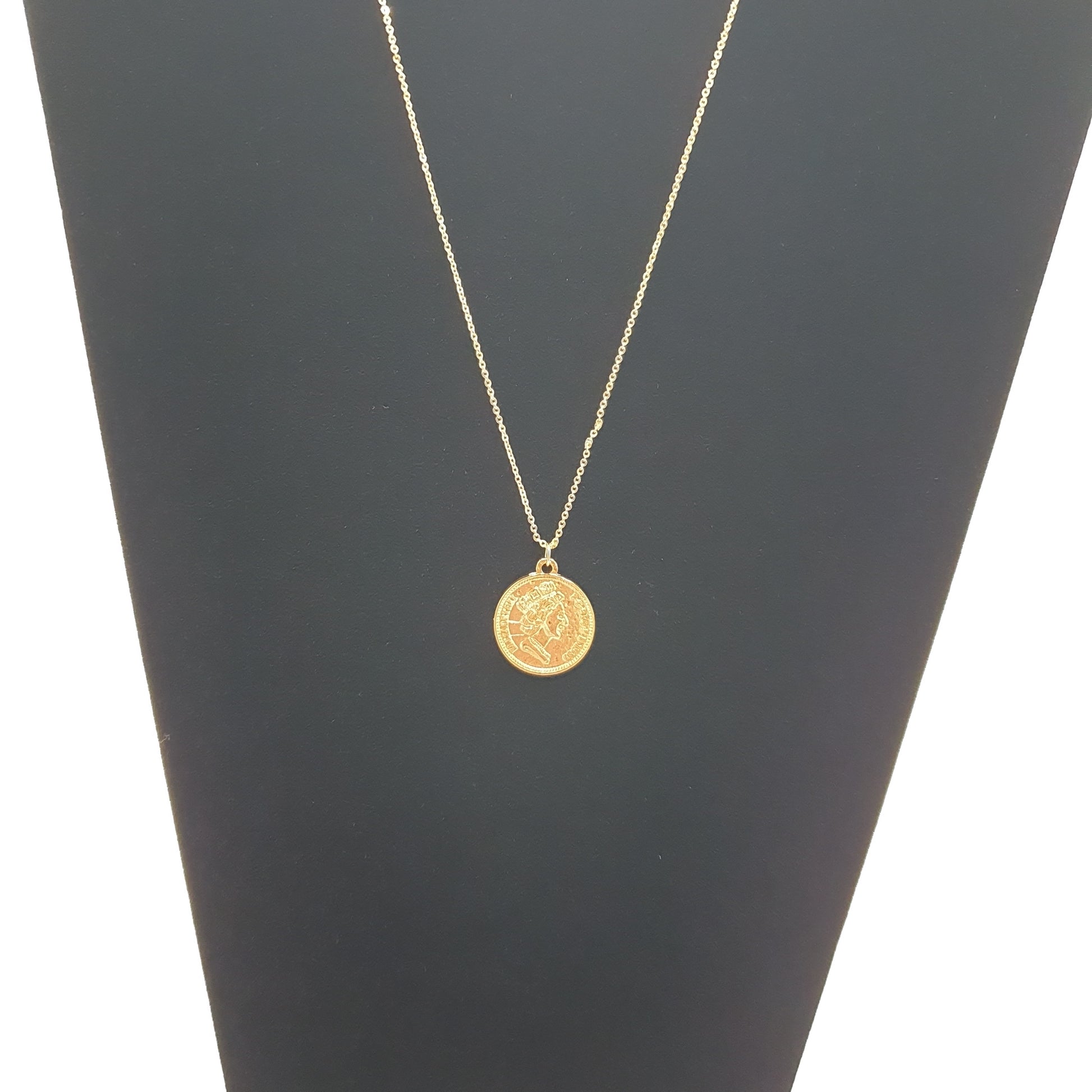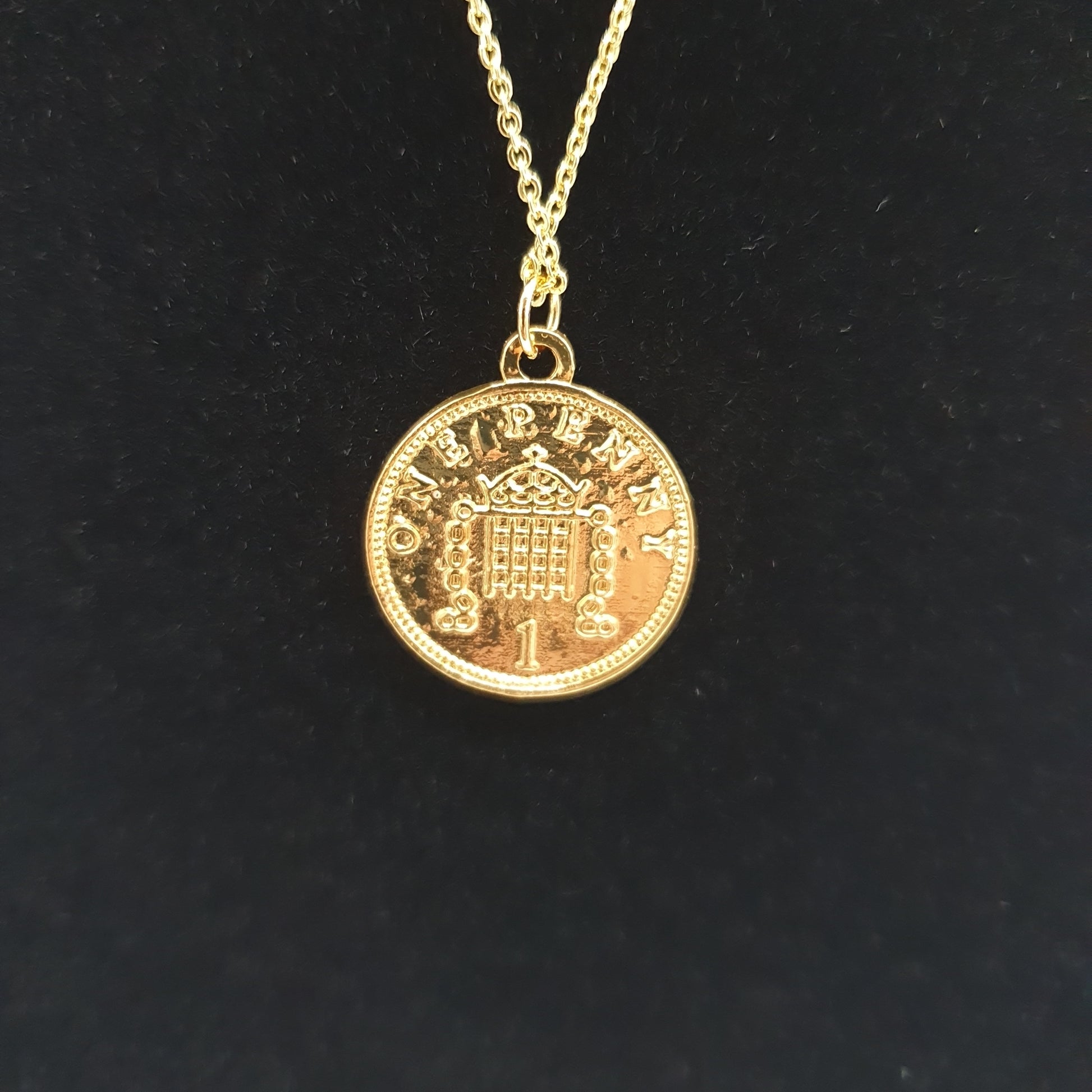 This Good Luck Penny Gold Necklace from Eleven16Edit is the perfect way to add a touch of luck to your look. The delicate gold chain is adorned with a single penny, a symbol of good fortune. The necklace is adjustable, so you can wear it at the perfect length for you.